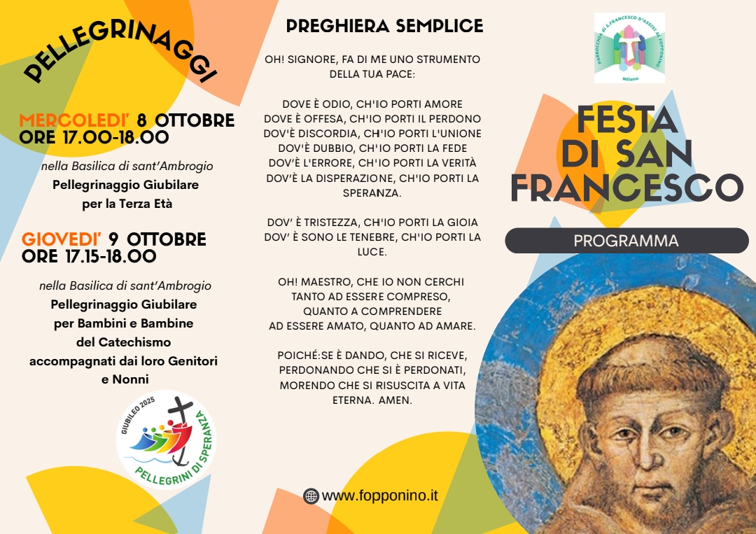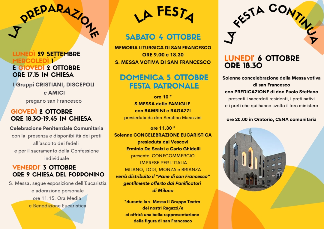 con la prima domenica di ottobre torna la memoria di san Francesco d’Assisi e per la nostra Parrocchia diventa celebrazione della Festa Patronale. In questi ultimi tre/quattro anni sono stati già numerosi gli eventi dedicati a san Francesco, anche perché s’avvicina, e lo celebreremo nel 2026, l’ottocentesimo anniversario della sua morte. La Chiesa tutta, in particolare la Chiesa italiana e il nostro Paese, avranno larga parte nel manifestare e confermare, attraverso iniziative di vario genere e di qualità eminente, che san Francesco vive!